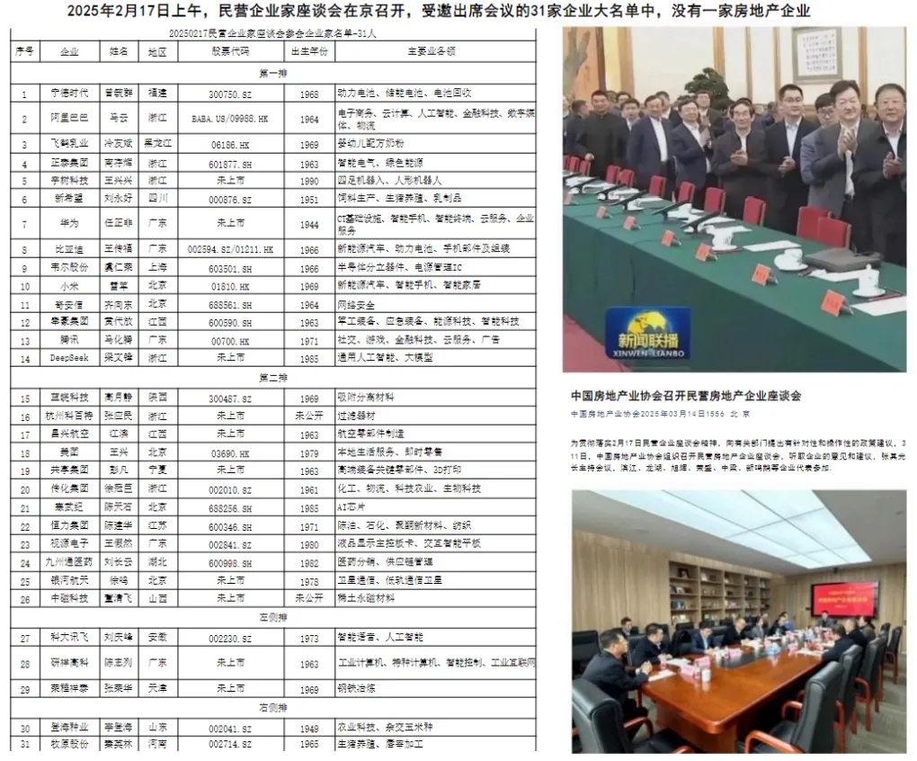 2025年民营企业家座谈会在京召开,受邀出席会议的31家企业大名单中,没有一家房地产企业,从一个侧面也应证了“不将房地产作为短期刺激经济的手段”的决心不会改变。