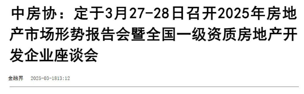 或许是3月11日的座谈会上,民营房企反映的问题,困难程度超出房协意料,中房协决定于3月27-28日召开2025年房地产市场形势报告会暨全国一级资质房地产企业座谈会。