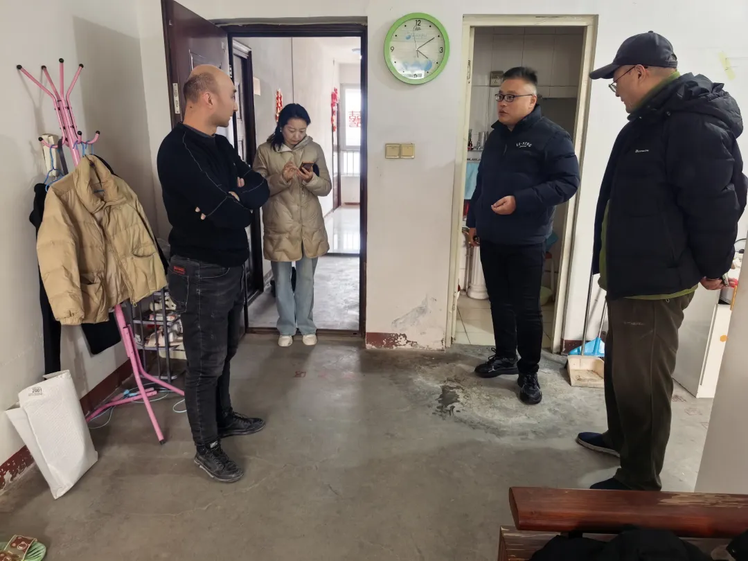 本周,技术科工作人员在旧关廉租房查看房管所报修的房屋,确定维修方案并组织施工单位进行维修。
