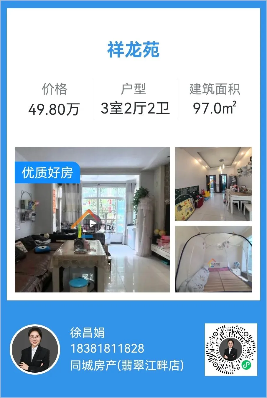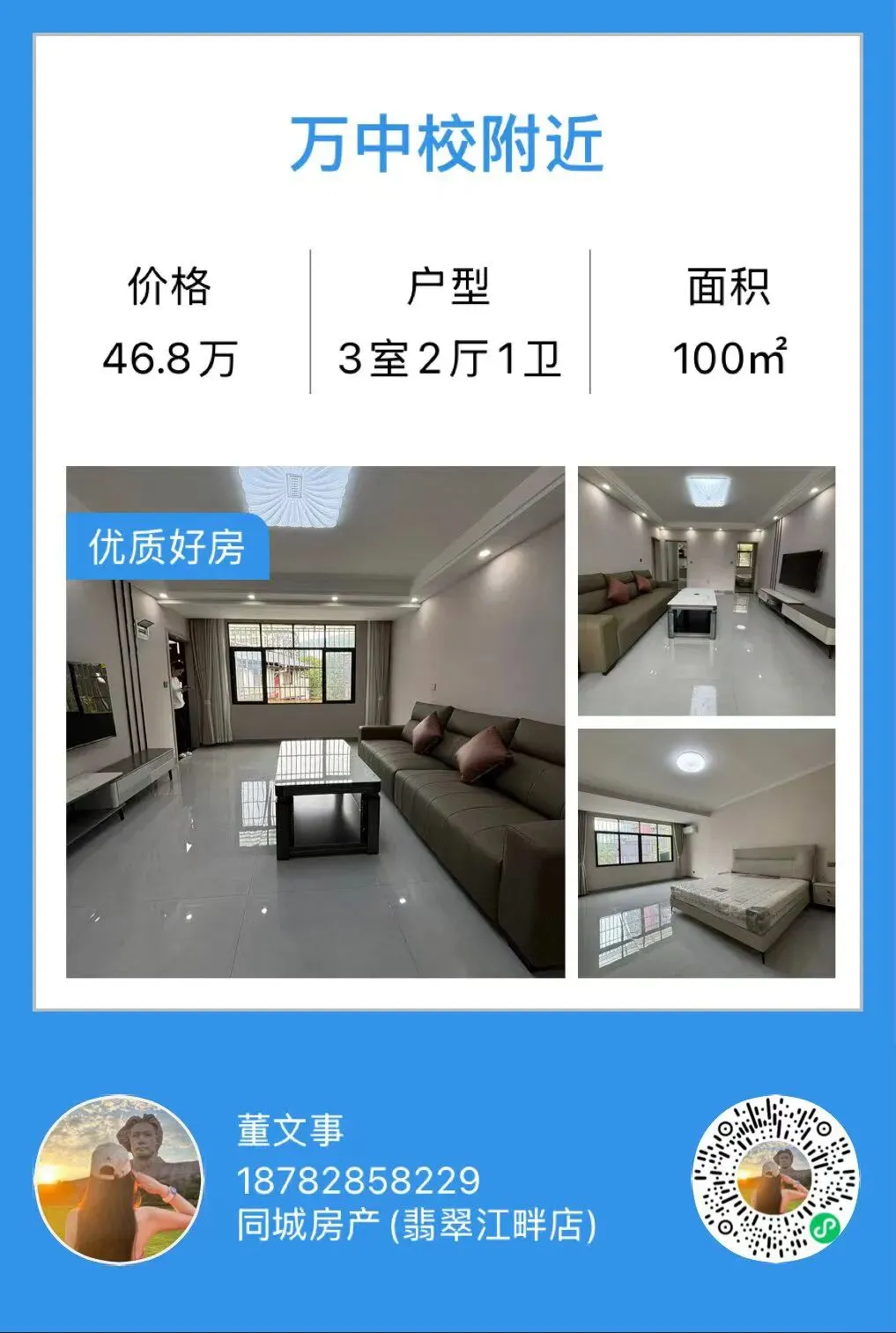 【万源房产】锅罐厂精装4房,面积110m²,家具家电齐全,总价56.8万