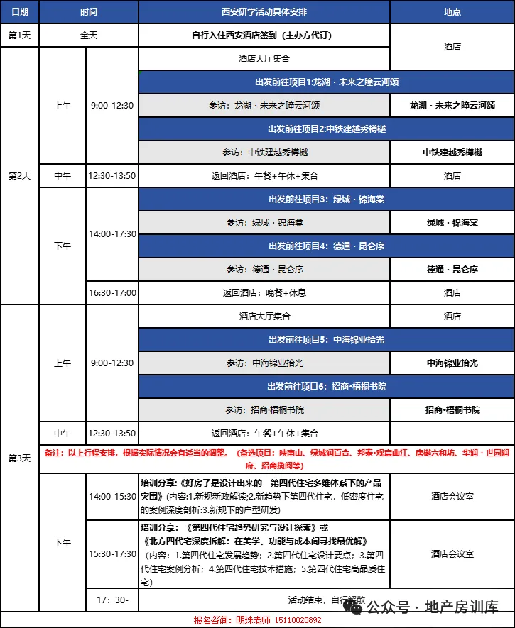 不止成都高品质人居研学!我们同步开启西安、重庆、武汉三大城市专场,聚焦第四代住宅 + 高品质住宅核心实践!想直观洞悉南北方第四代住宅的地域适配与创新差异?走进这四大城市(西安、重庆、成都、武汉)研学专场实地探盘揭晓答案!(报名灵活自由,可单独锁定单城市席位,也可选择双城市或三、四城市联动报名,联动参研更享专属优惠,省心又划算!)【西安站·1月9-10日】《走进西安——“好房子”新规下第四代住宅产品研发创新与设计要点深度研学》活动将带您走进绿城锦海棠(刚需小四代标杆,89-105㎡高赠四房)、铁建高新璞悦(刚需小四代新标杆,102㎡“露台+书房”智慧户型)、龙湖未来之瞳云河颂(改善双挑空典范,6米挑空全景空间)、德通昆仑序(改善双挑空升级之作,143㎡“双挑空+生态花池”户型)、中海锦业拾光(五代宅代表,绿色智慧生态户型)及招商梧桐书院(低密挑空创新项目),由各个项目设计负责人全程带队拆解户型巧思、成本管控与技术落地经验,帮您精准把握“好房子”核心逻辑,拓展行业资源。
