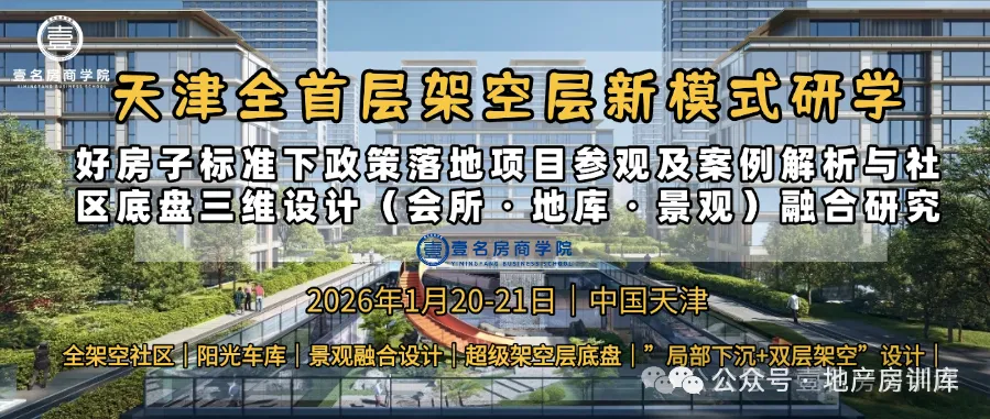 全首层架空层不仅能降低开发成本、提升产品竞争力,更能通过与会所、地库、景观的三维融合,构建高品质社区底盘。2026年1月20-21日,我们将开启本次天津研学之旅,深度走进包括天津首个政策落地标杆项目——中建理想城在内的4-5个全首层架空层标杆项目实地参观。
