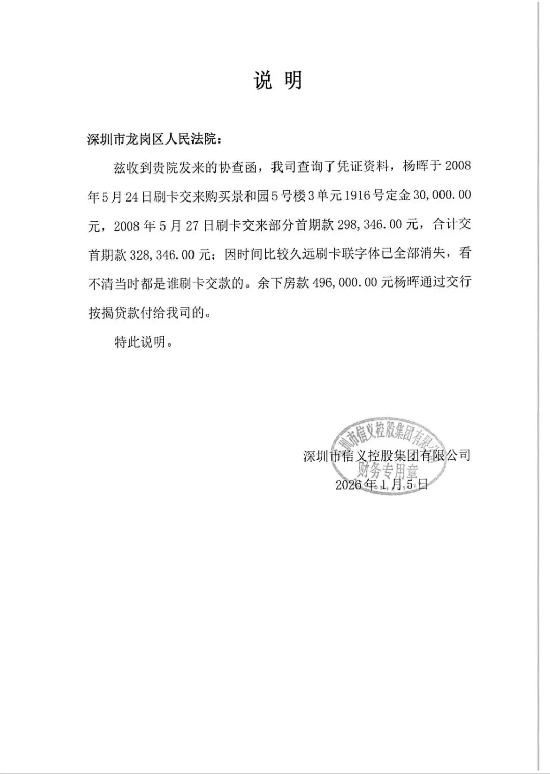 然而,面对法院的协查函,信义地产的说明回复令人不寒而栗:
