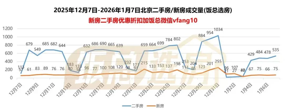 >1月1号-7号北京二手房住宅网签2014套,7号535套
