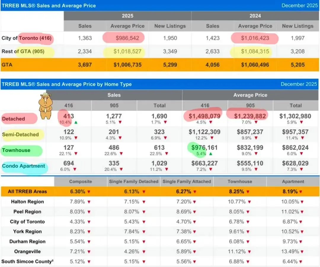 1月3日,多伦多地产局公布了 大多伦多2025年12月房产报告 今天咱们一起来回顾一下刚过去的这个月,多伦多的房地产市场发生了哪些变化。官方报告速读