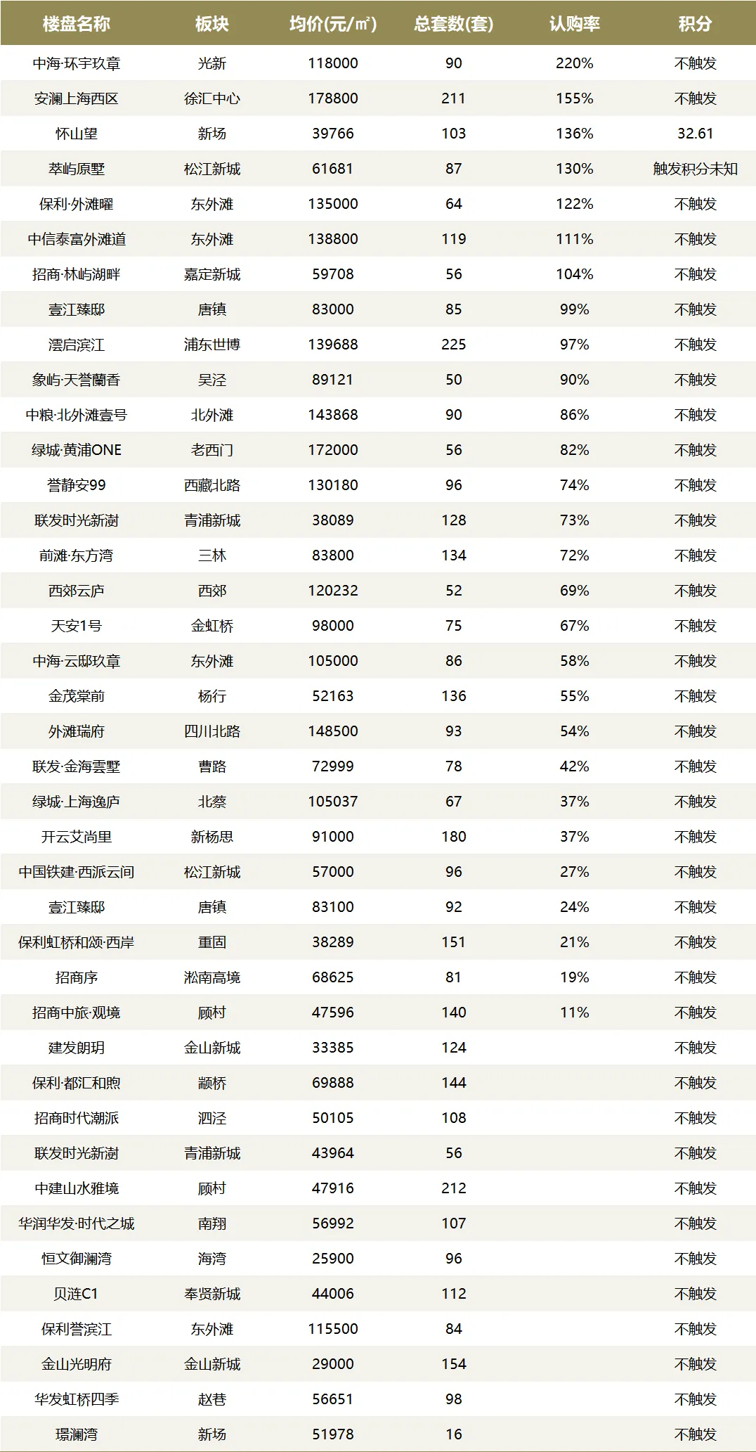 12月上海新建商品住宅成交面积46.7万㎡,环比增加45.9%。新开盘项目共40个,较此前两个月有明显增加,其中仅2盘触发积分,认购率过百项目7个。另有8个项目的认购率没有超过50%,12个项目官宣取消摇号。