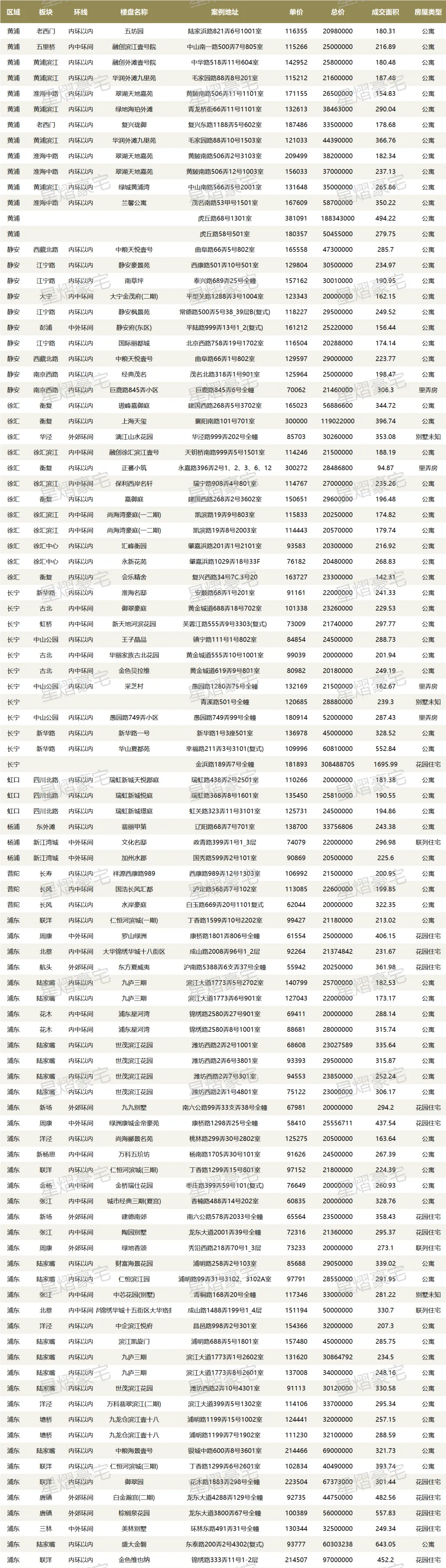成交主要来自尚海湾豪庭(2套)、融创徐汇滨江壹号(1套)、保利西岸名轩(1套)。