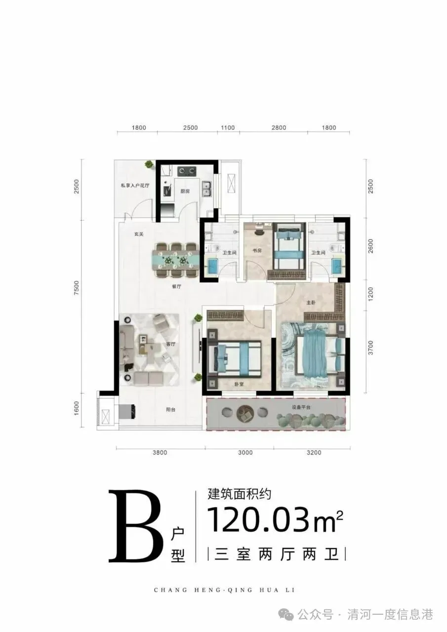 建筑面积:3室2厅2卫 120㎡