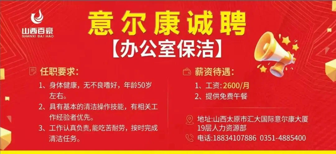 胡同涮肉诚聘:1、服务员,3800+200+绩效,45岁以内,身体健康,无疾病,服从上级管理,吃苦耐劳;✅以上岗位包食宿 ,进升空间大,月休3天,有工作经验优先,鸽子勿扰。✅工作地址:山西省太原市小店区交通小区西门☎如有意者请联系电话:18335666354任