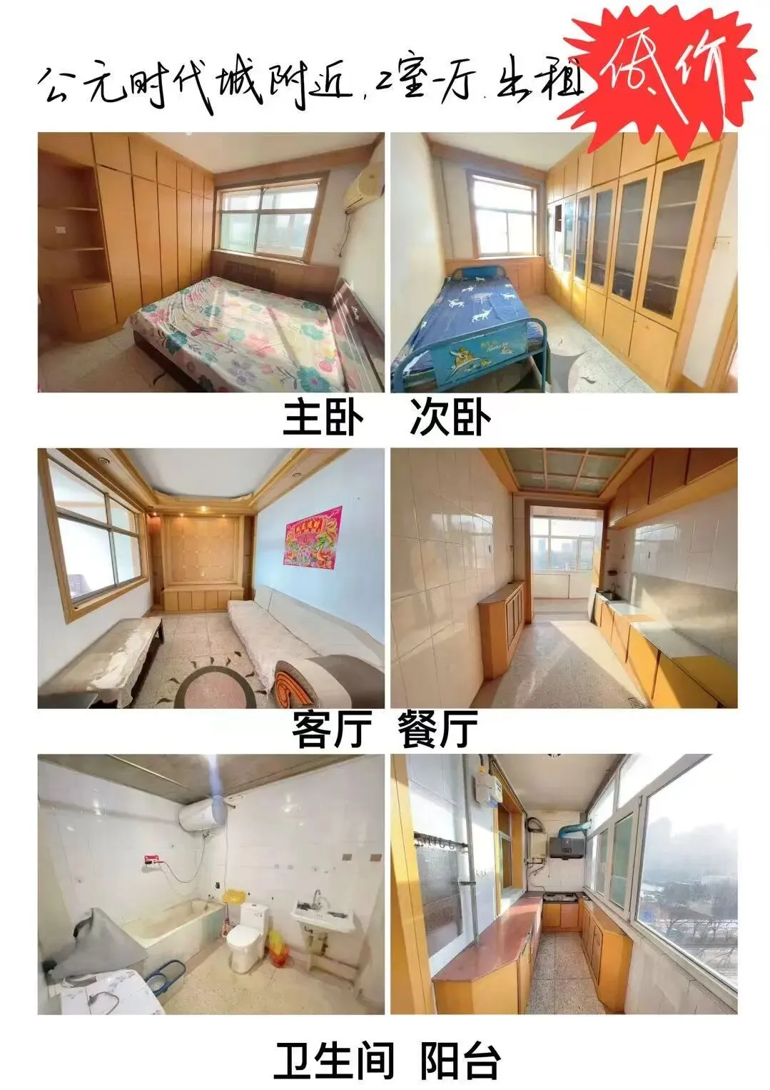 房东直租公园时代城附近两室二厅。75平米。双卧朝南,大阳台。院内免费停车。价格1000左右。可以短租。联系电话:17200655160