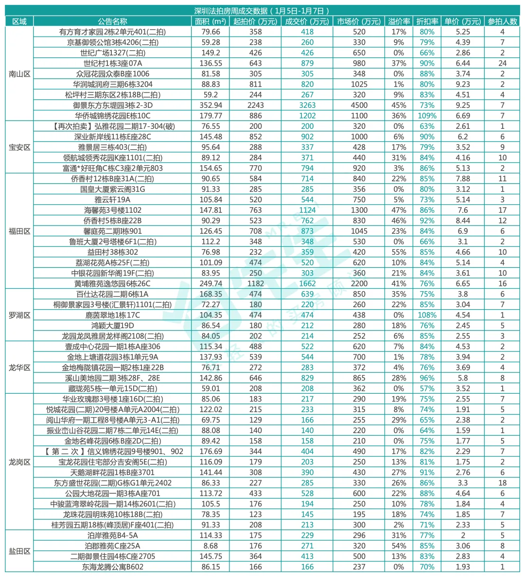 真实成交 | 深圳二手房成交数据及法拍房成交信息(1月1日-1月7日)