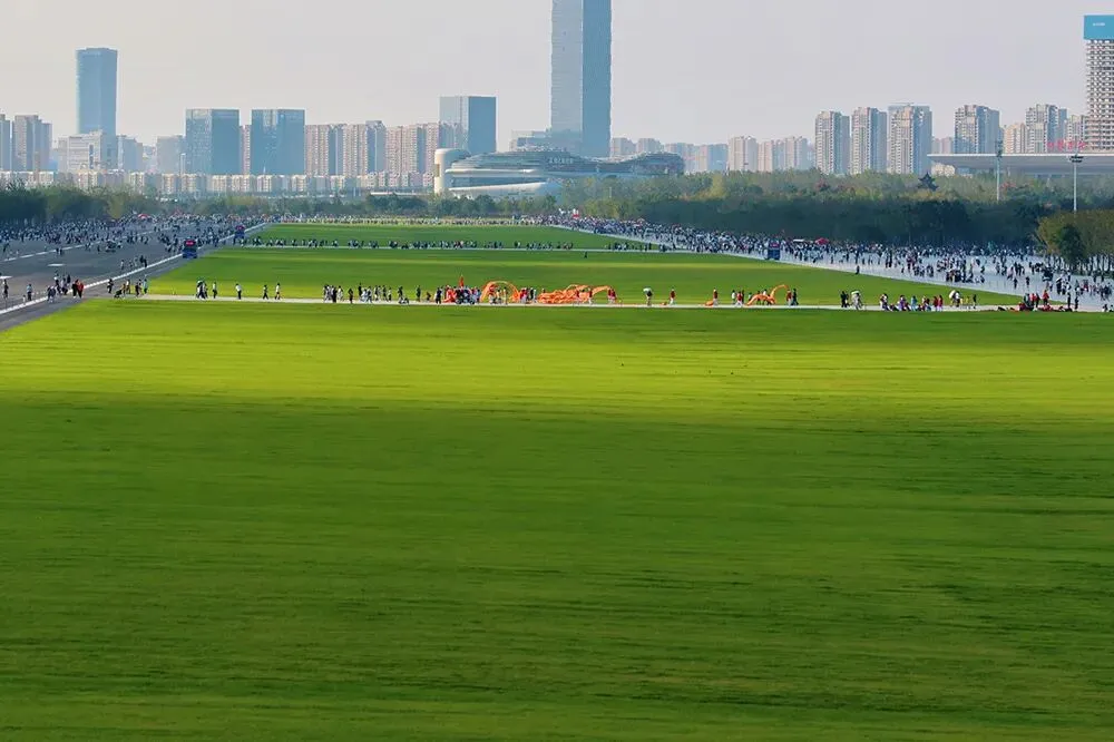 切口一:海绵城市。面对原机场31%的硬化地面,合肥没有一拆了之,而是保留主跑道,用「生态透水层+下沉式设计」改造成「梦想大草坪」——全国最大的单体下沉式绿地。