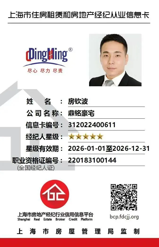 官方最高诚信等级:上海市房地产经纪行业信用信息平台连续三年(2024-2026)五星诚信经纪人