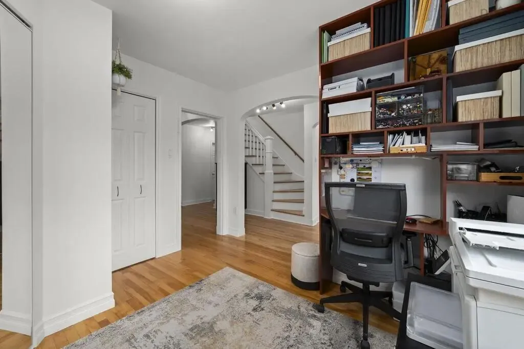 步入屋内,映入眼帘的是经过精心翻新的室内装潢,精美的硬木地板贯穿整个主层,流畅自然。主层拥有明亮的客厅,采光出色的办公室以及宽敞的主卧。主层的厨房经过精心改造,空间宽敞、储物橱柜充足。