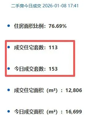 朋友们,2026开年第一周,厦门二手房市场好像突然按下了“快进键”!元旦小长假刚过,从1月4号到8号,短短5天时间,二手房竟然一口气成交了617套,平均每天破百!尤其1月8号那天,直接冲上了153套的高点,其中住宅就占了113套——这势头,说是“久违的小阳春”,真不夸张。