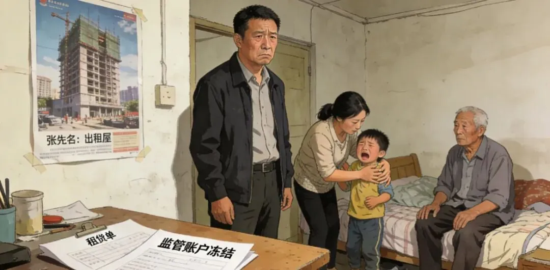 如今他一家五口租房住,卖房款卡在监管账户里,每月还要付8000房租。