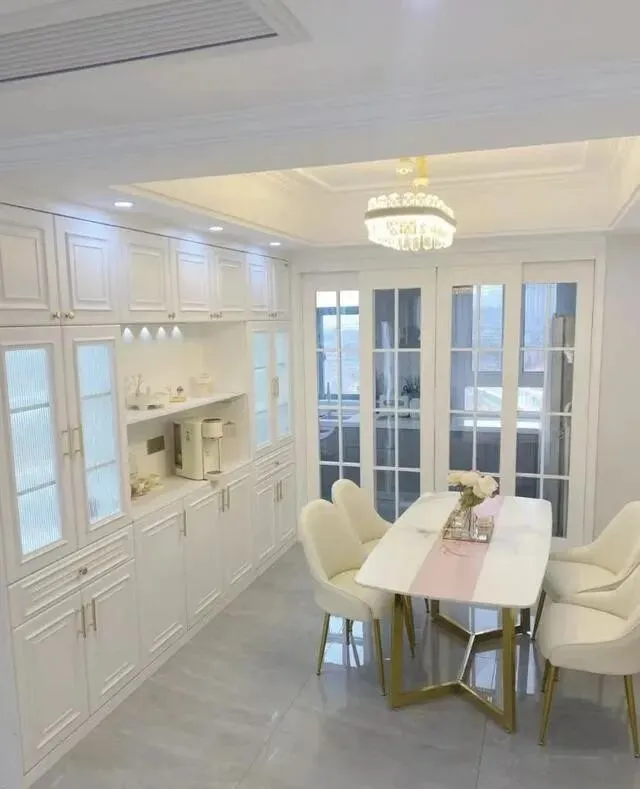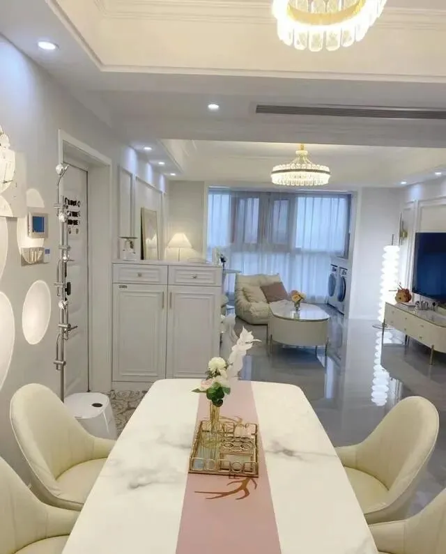 岩板加水晶灯这个搭配 , 浪漫又不夸张 , 刚刚好。
