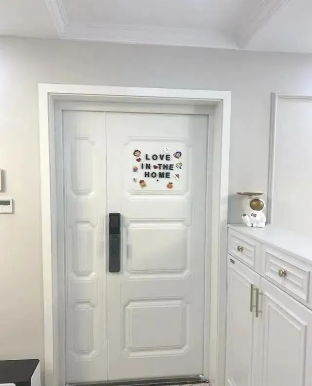 柜子是实木多层的 , 肤感白配金色把手 , 颜值在线。