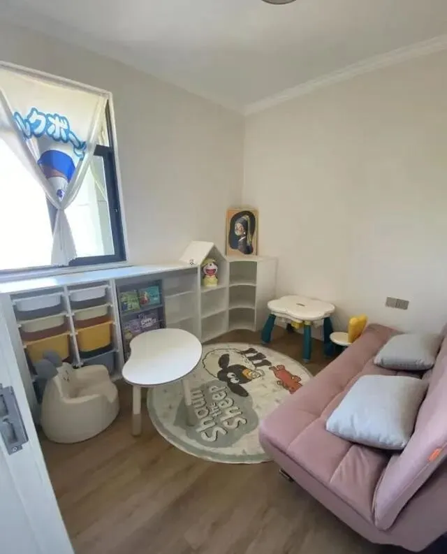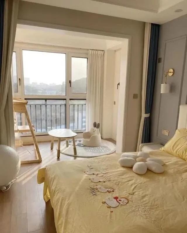 这里还有个神操作 , 把客厅阳台隔进了儿童房!