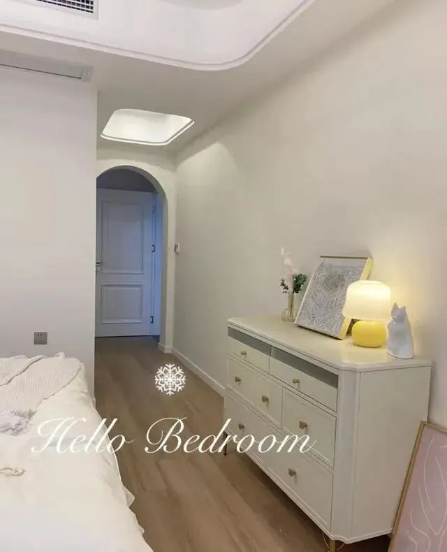 其他墙面刷的可可蛋奶色 , 暖暖的 , 很治愈。