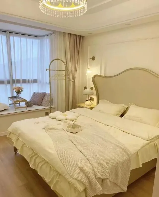 主卧墙面也是通刷乳胶漆 , 简约清爽。