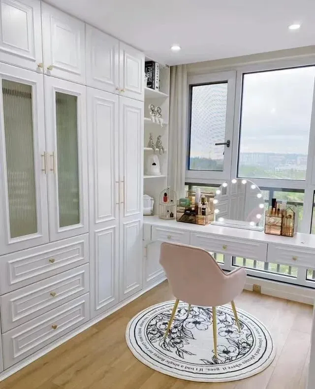 衣帽间和主卧之间 , 用了个拱门连接 , 好看又实用 , 过渡自然。
