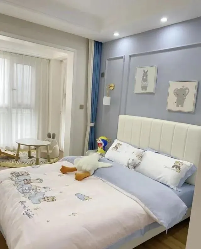 儿童房背景墙也是石膏线 , 简单但不单调。