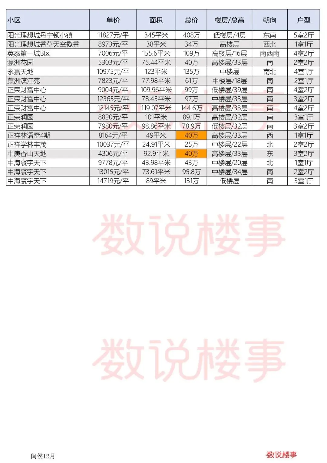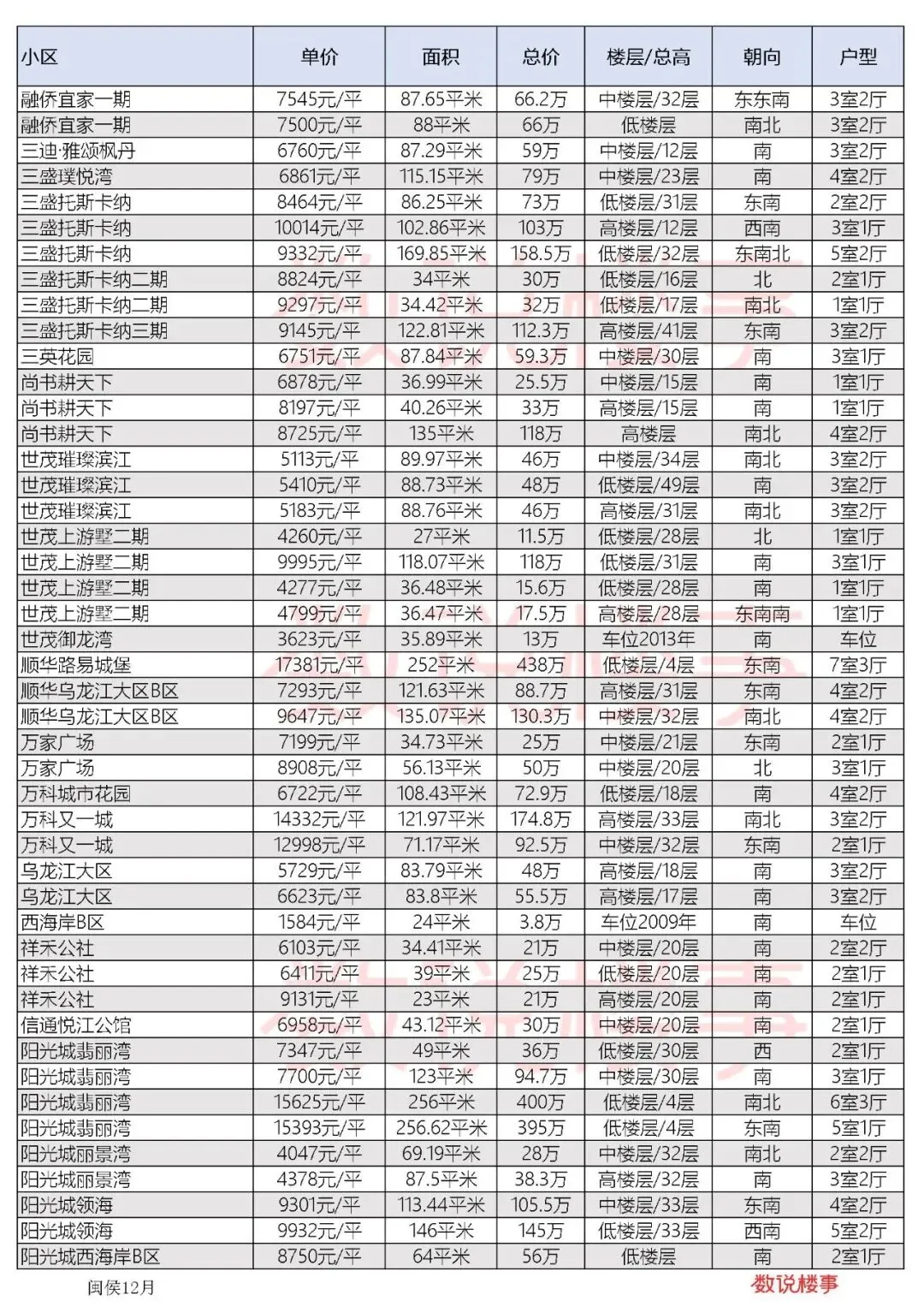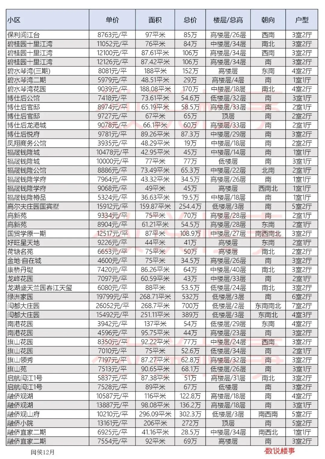 福州二手房十二月闽侯成交数据价格 vol.7
