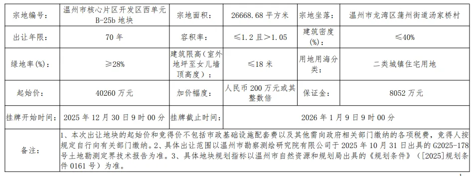 今天上午,温州市区迎来了2026年首宗住宅用地暨温州市核心片区开发区西单元B-25b地块的出让。