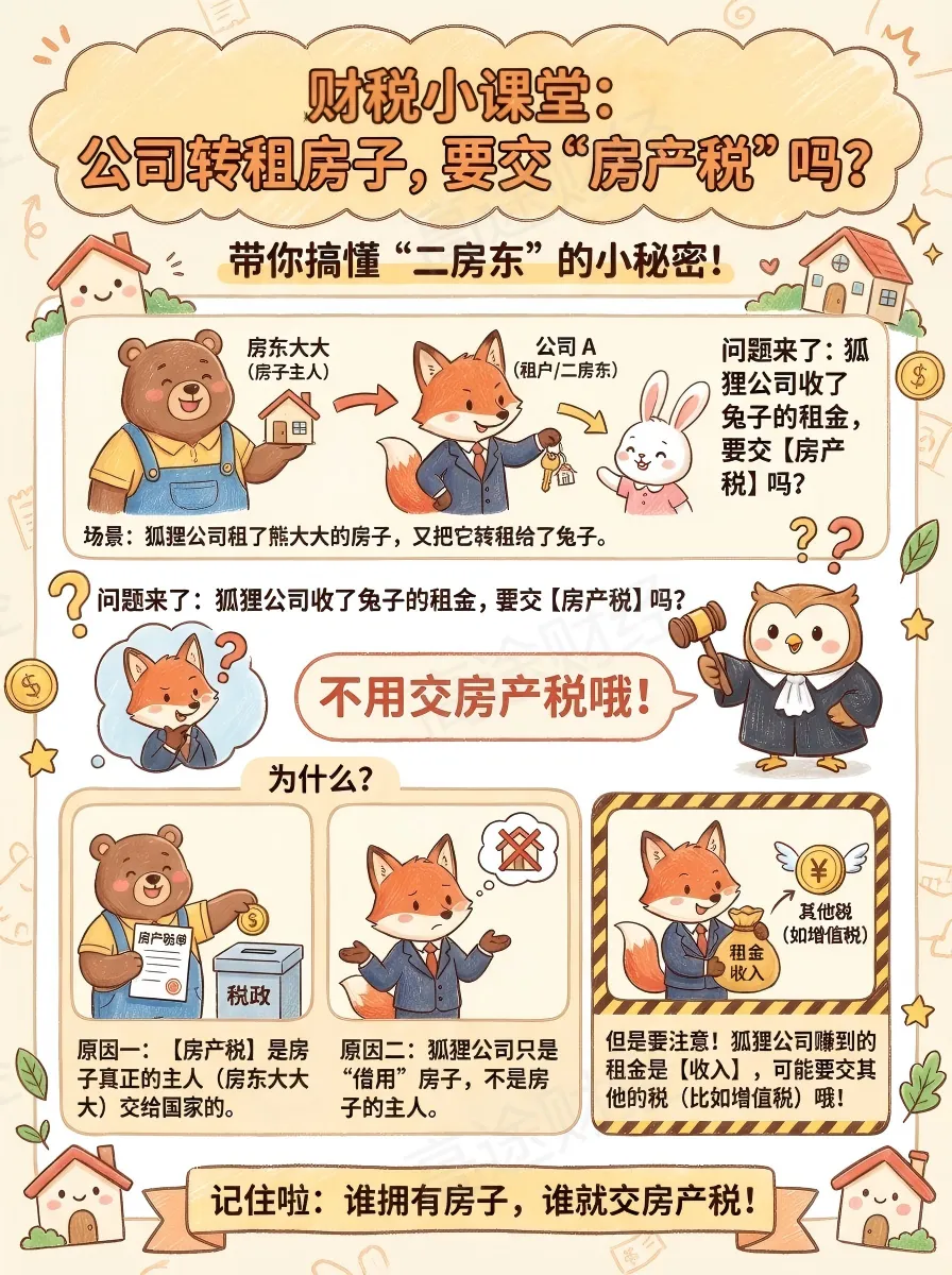 一张漫画了解“公司转租房产取得的收入,要交房产税吗?”