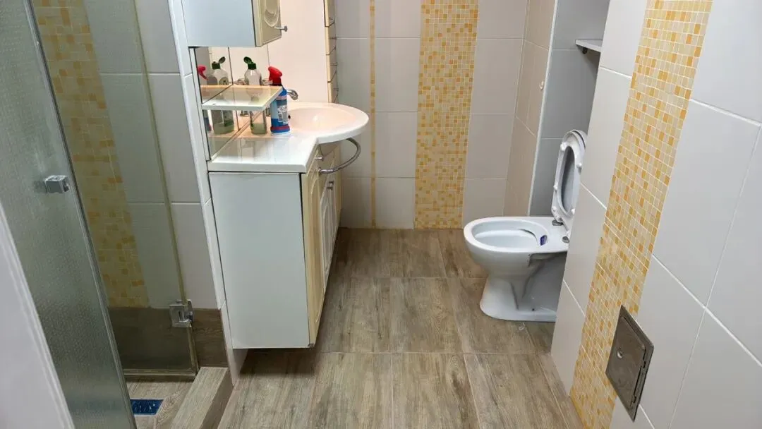 * 两个卫生间 + 现代淋浴房,配洗衣机