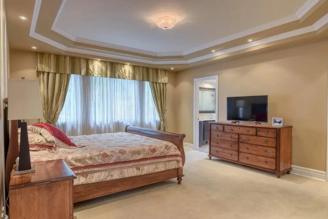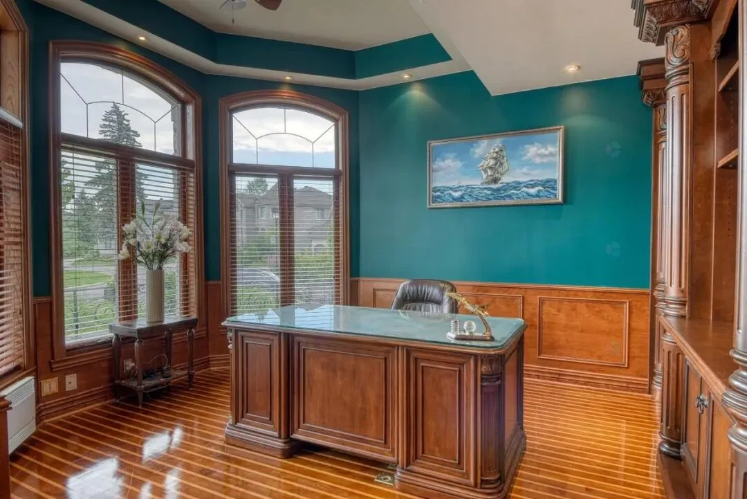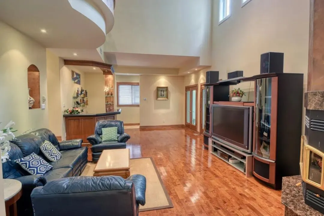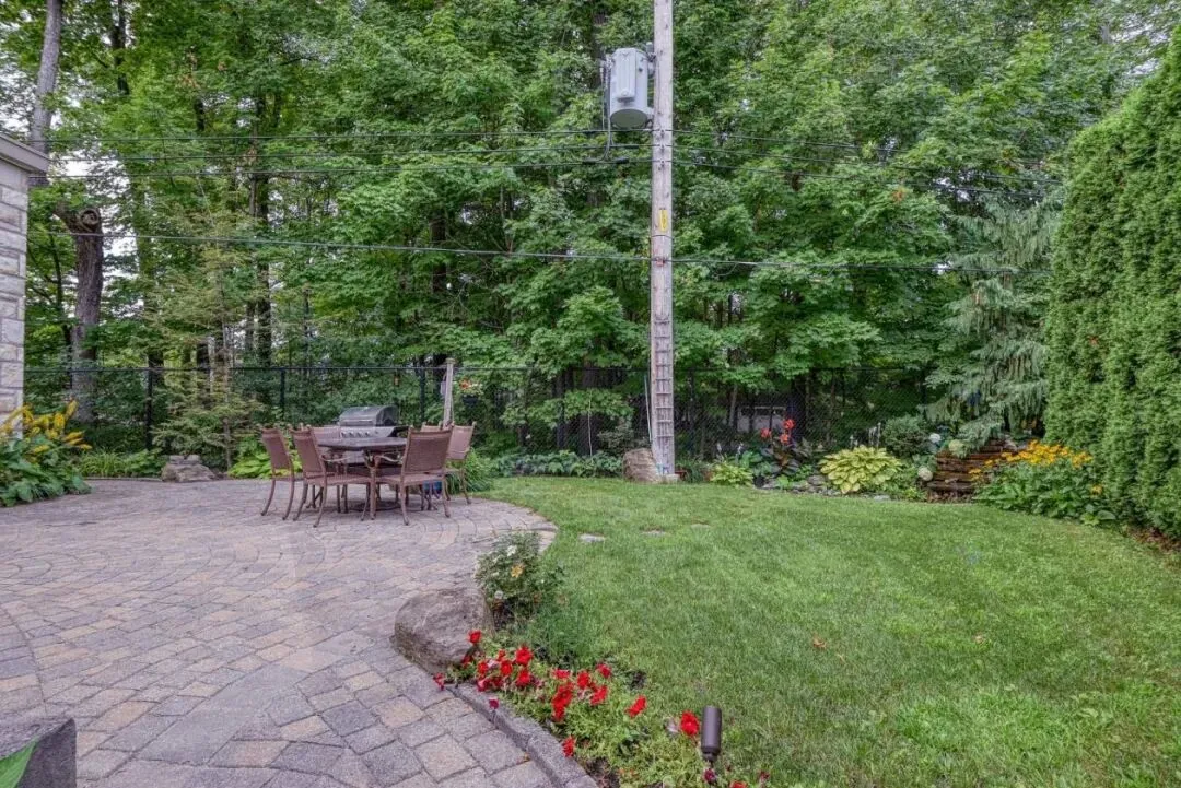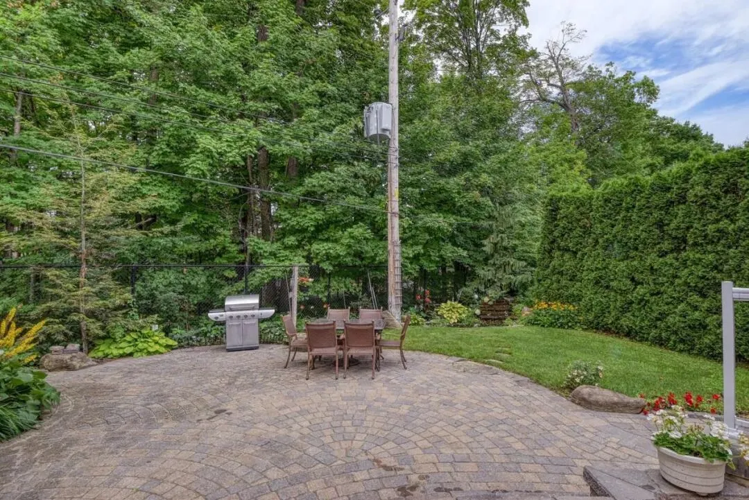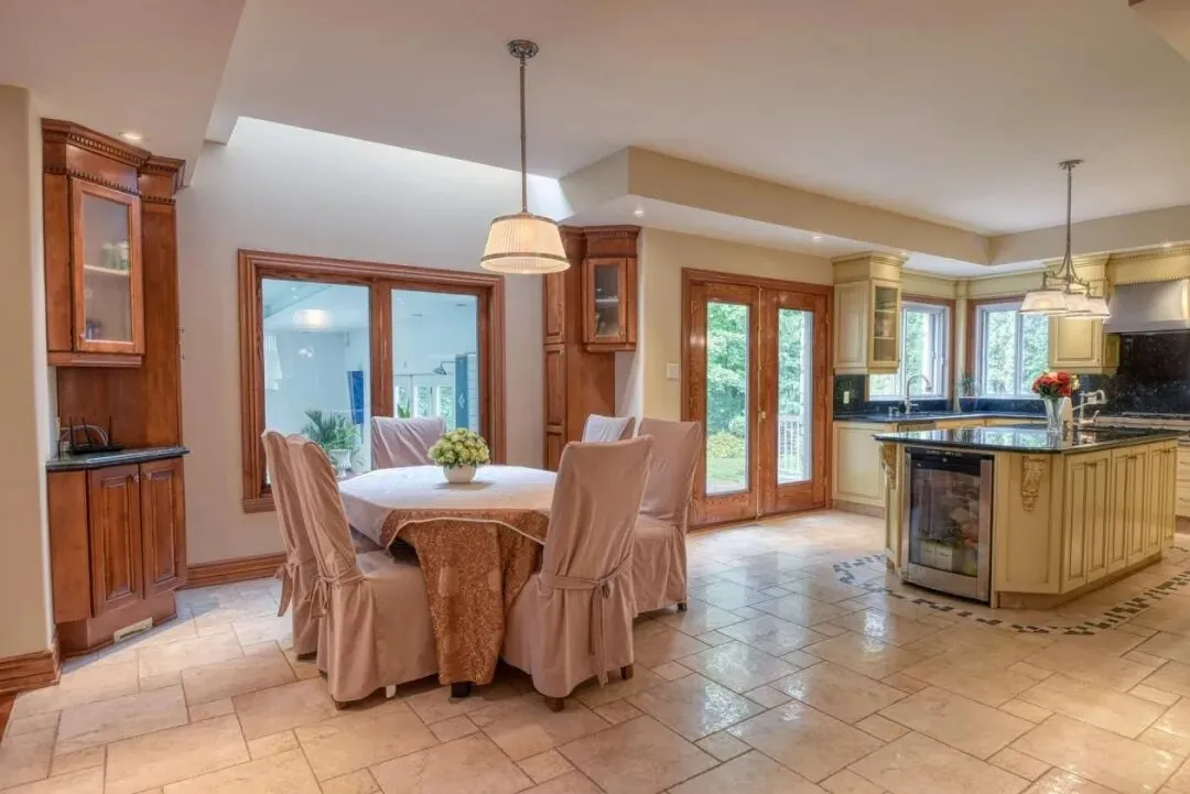 住宅内部空间恢弘而考究:二层设四间卧室,每间均配有豪华独立卫生间;拥有罕见的室内泳池(约60×27英尺)、私人定制酒窖及可容纳三辆车的室内车库。全屋配备中央冷暖系统、中央吸尘、中央换气加湿系统,连车库地面均铺设地热,细节尽显奢适。后院设计极具私密性,背倚静谧小树林,毗邻碧波湖畔,构成蒙特利尔岛内难得一见的珍藏之地。