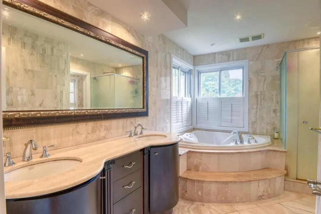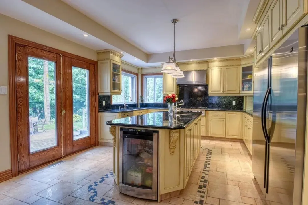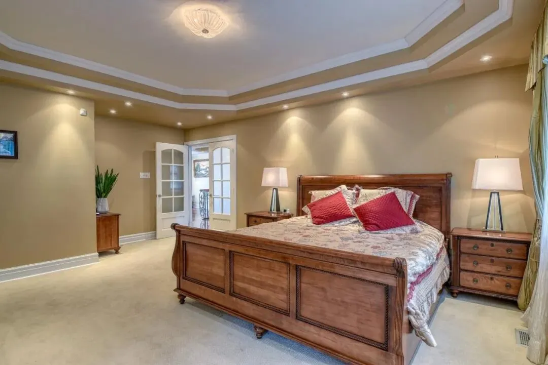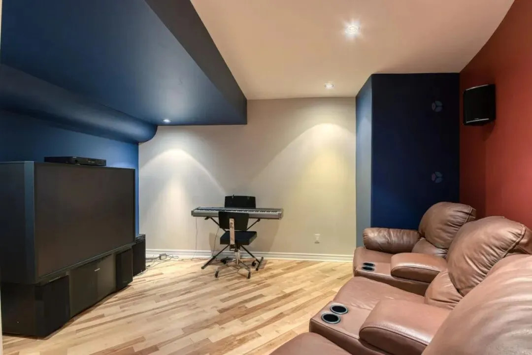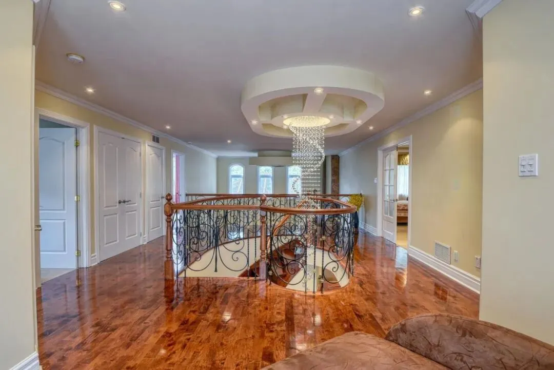 住宅内部空间恢弘而考究:二层设四间卧室,每间均配有豪华独立卫生间;拥有罕见的室内泳池(约60×27英尺)、私人定制酒窖及可容纳三辆车的室内车库。全屋配备中央冷暖系统、中央吸尘、中央换气加湿系统,连车库地面均铺设地热,细节尽显奢适。后院设计极具私密性,背倚静谧小树林,毗邻碧波湖畔,构成蒙特利尔岛内难得一见的珍藏之地。