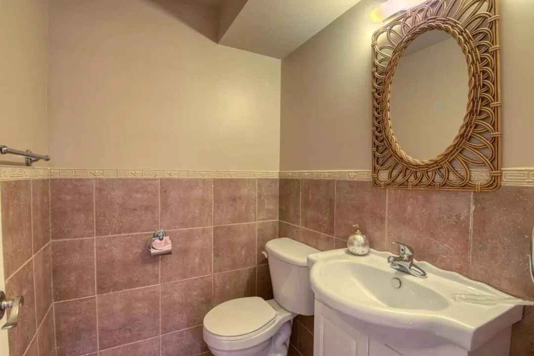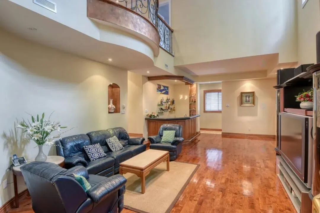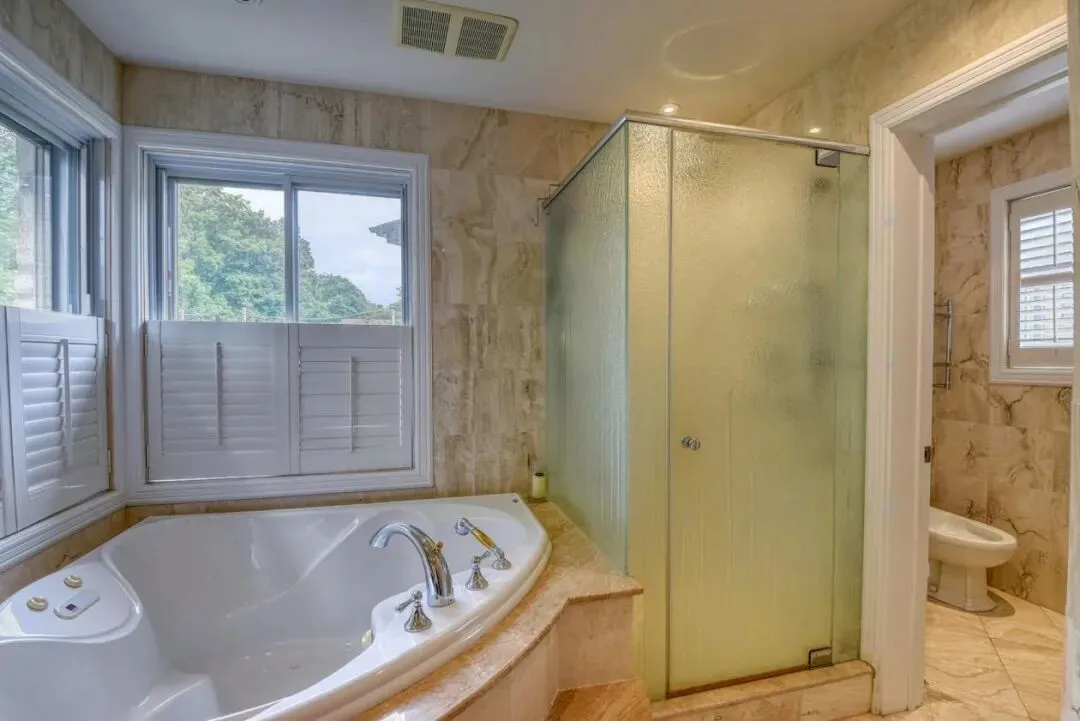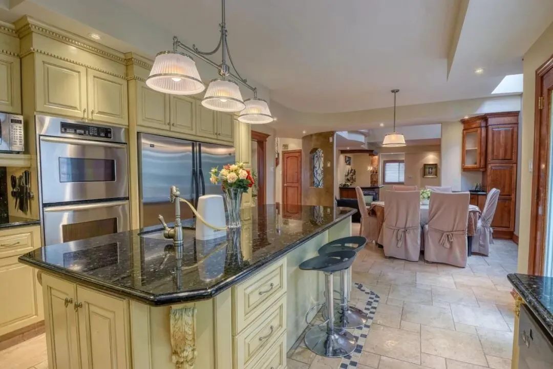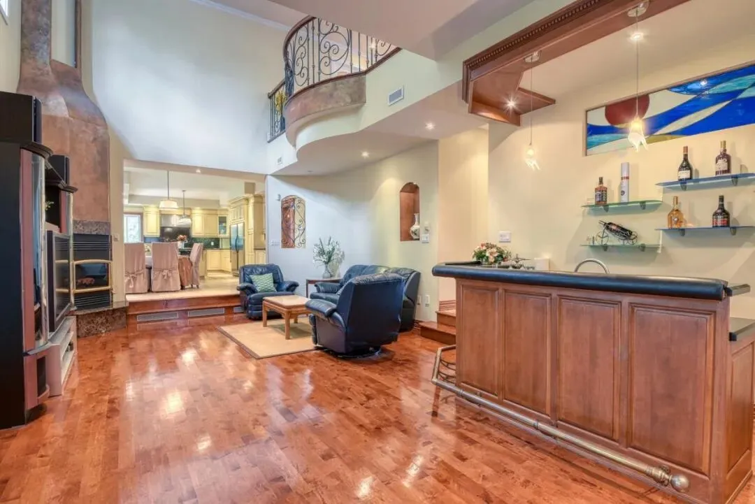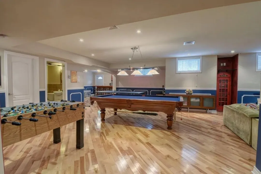住宅内部空间恢弘而考究:二层设四间卧室,每间均配有豪华独立卫生间;拥有罕见的室内泳池(约60×27英尺)、私人定制酒窖及可容纳三辆车的室内车库。全屋配备中央冷暖系统、中央吸尘、中央换气加湿系统,连车库地面均铺设地热,细节尽显奢适。后院设计极具私密性,背倚静谧小树林,毗邻碧波湖畔,构成蒙特利尔岛内难得一见的珍藏之地。