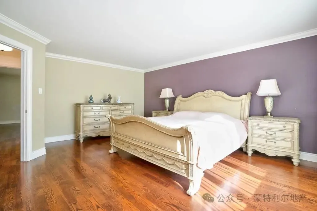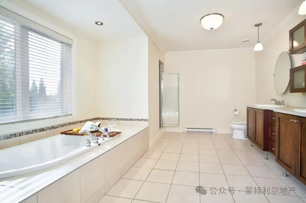 房屋的布局合理,拥有6间卧室,4间位于主层,2间在地下室,非常适合大家庭居住。3间浴室和1间盥洗室为全家人提供了便利。主卧奢华宽敞,套内浴室设计考究,双洗手台、干湿分离、淋浴间与浴缸一应俱全。