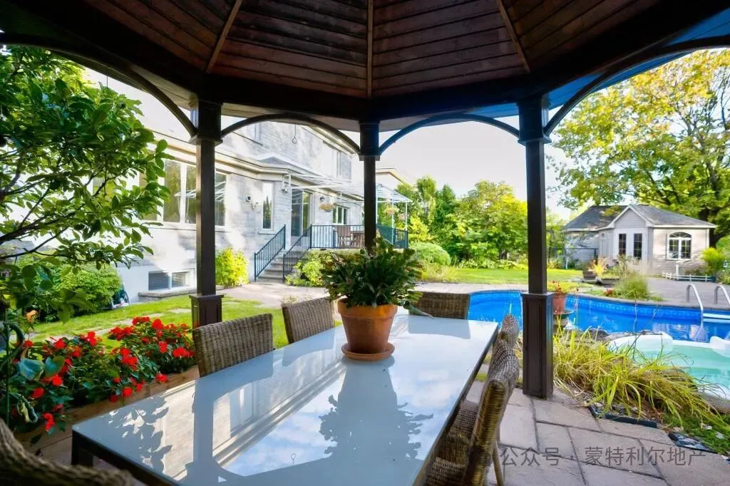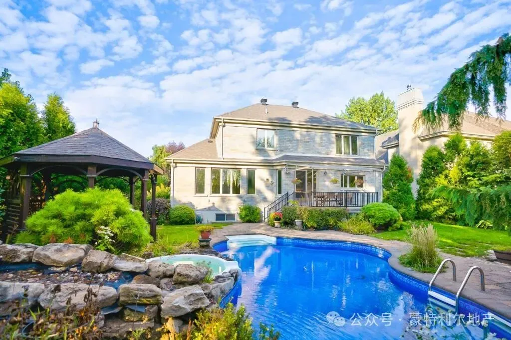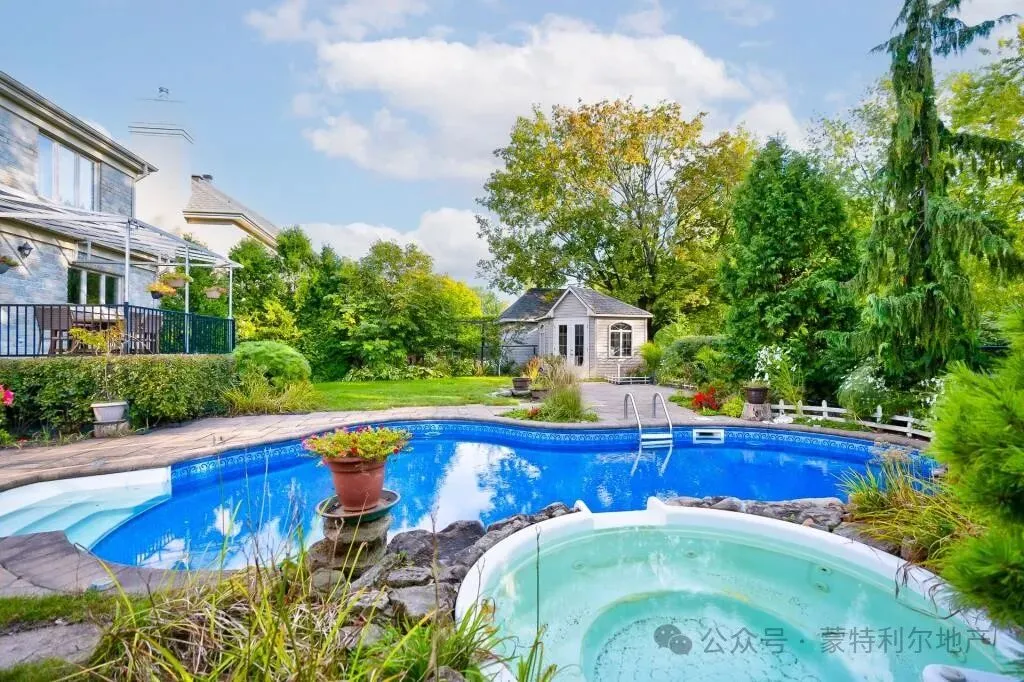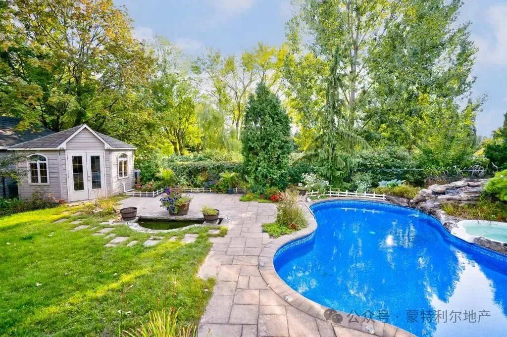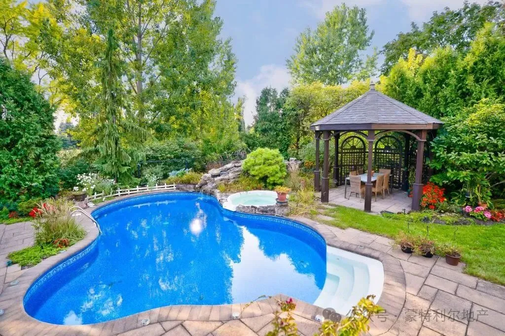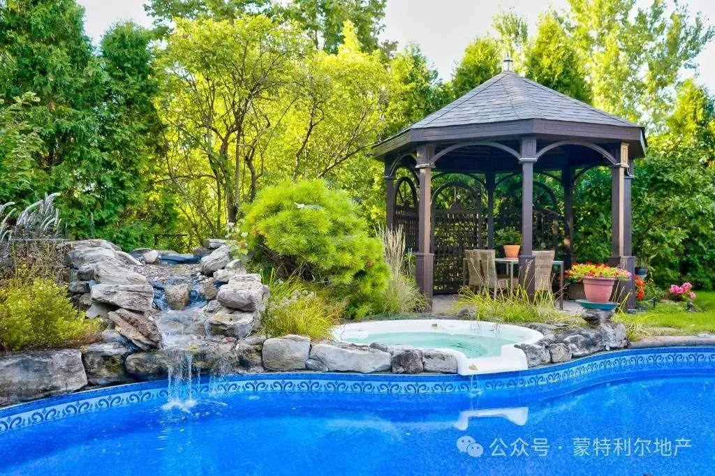 后院精心打造,私密性极强,配有地下泳池、凉亭、小屋、SPA和露台,是家人和朋友聚会或放松的理想之地。物业还提供双车库和4个石板铺设的车道停车位,满足多车家庭的需求。