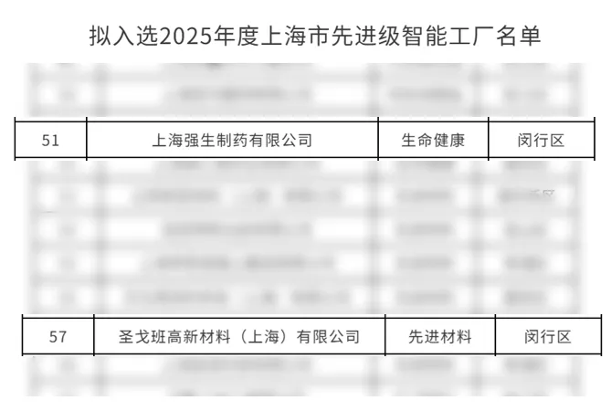 上海市经济和信息化委员会已公布2025年度上海市先进级智能工厂两批公示名单,其中,闵行开发区企业上海强生制药有限公司、圣戈班高新材料(上海)有限公司,闵行开发区临港园区企业上海天岳半导体材料有限公司成功入选,标志着企业在自动化、信息化和智能化转型方面取得重要的阶段性成果。