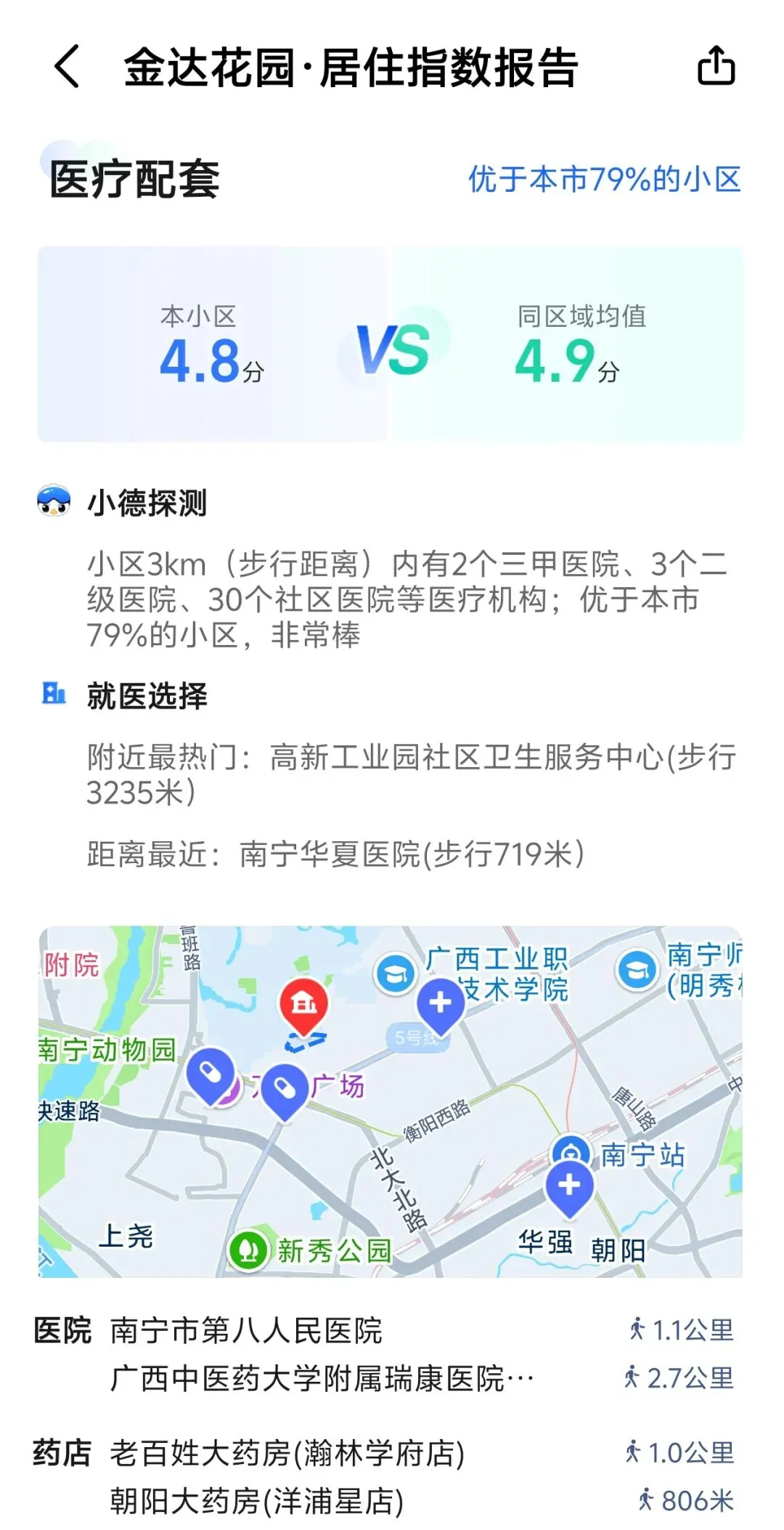 周边医疗资源丰富,南宁市第八人民医院、广西医科大学附属瑞康医院等多家医院环伺,为家人健康提供专业保障;周边药店密集分布,日常买药、小毛病就诊都非常方便,真正实现“小病不出社区,大病快速就医”。