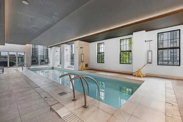 大楼配套设施一应俱全,提供顶层空中酒廊俯瞰城市与河景,时尚的酒吧与娱乐室供社交休闲,完善的健身房、恒温泳池、桑拿与SPA 满足健康生活需求,并设有户外露台与烧烤区享受夏日时光。大楼配备 高速电梯、24小时安保与无障碍通道,兼顾舒适与安全。更重要的是,项目直通蒙特利尔地下城(RESO),步行即可抵达地铁、火车站及 Bell Center,周边餐厅、精品店、大学与医院环伺,真正实现高端都市生活的便利与尊享。