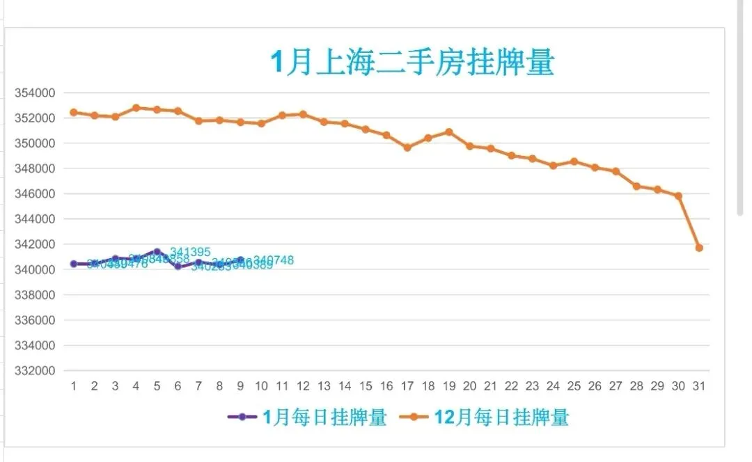 🏠昨日(1月9日,周五)挂牌340748笔,较前一日增加359笔,日均挂牌340662笔,约34.07万笔,挂牌与实际成交比633:1,去化周期约21.1个月。