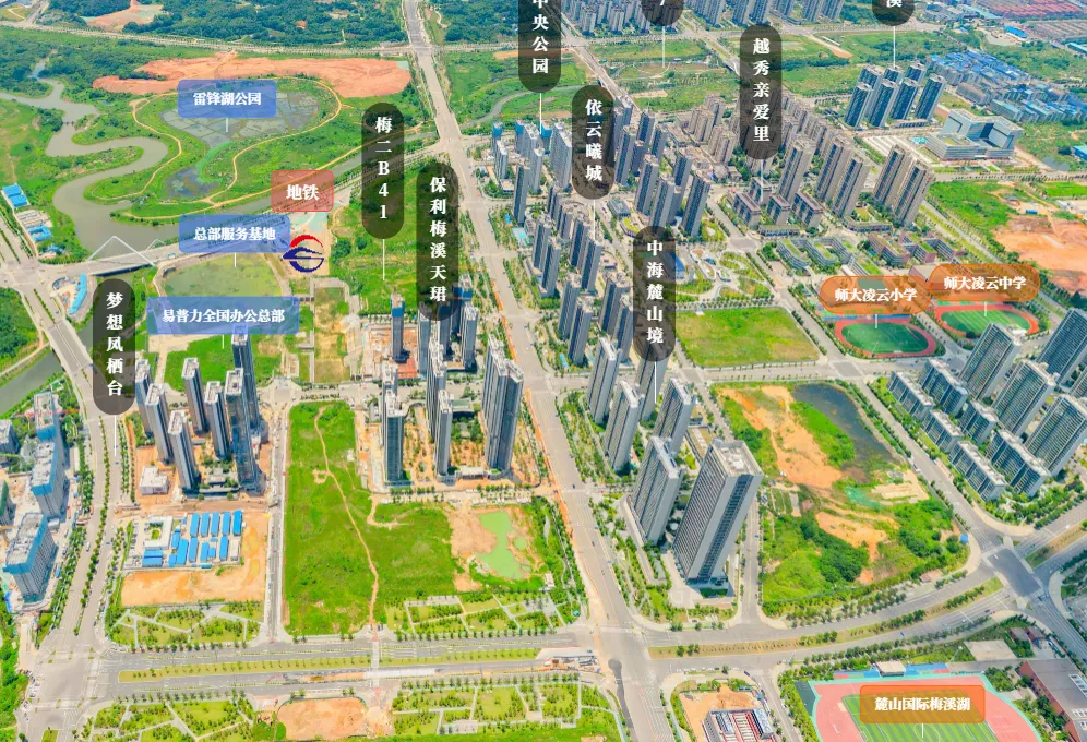 【环境】梅溪湖公园、银杏公园、桃花岭公园、梅岭公园、象鼻窝森林公园周边龙王港水系环绕。