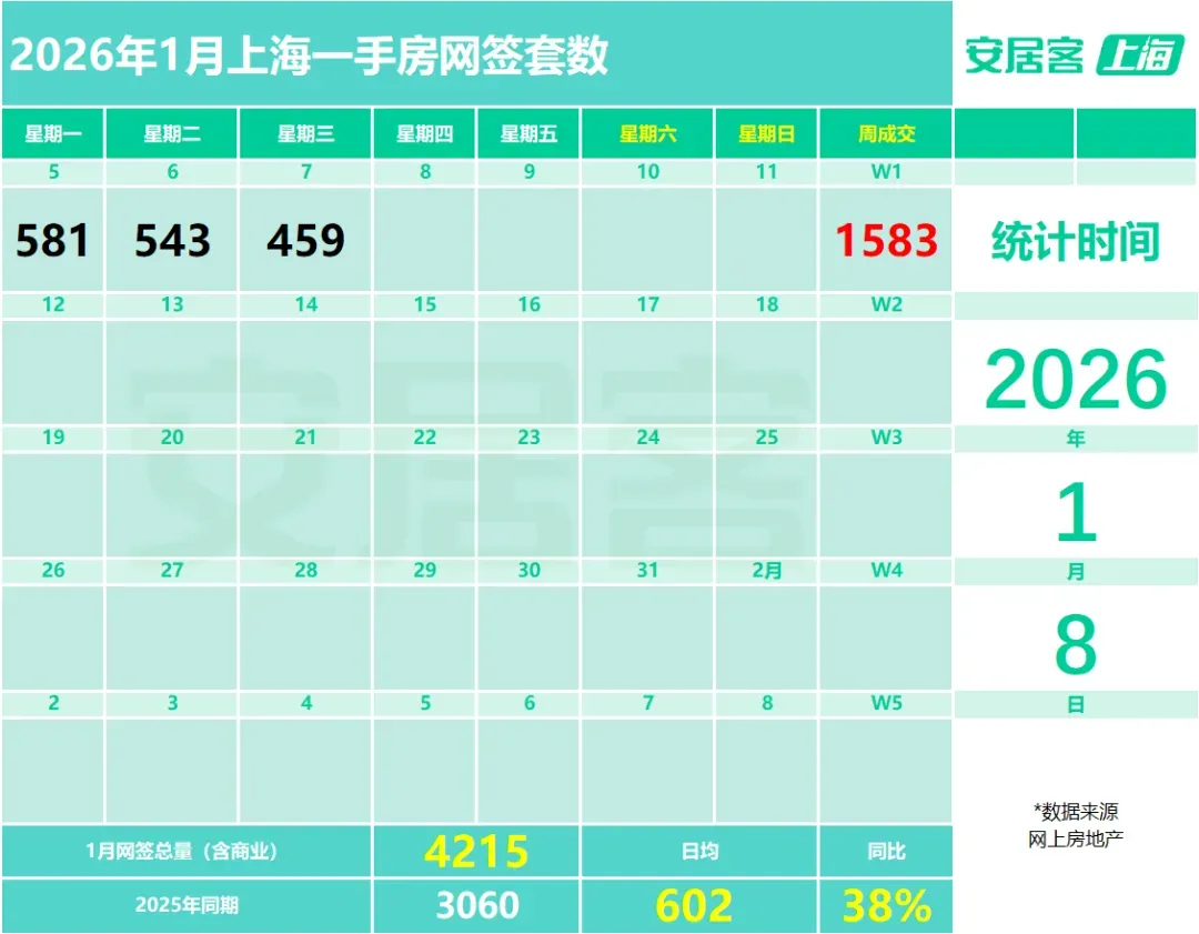 >新房459套,二手房633套!1月7日上海网签数据出炉!