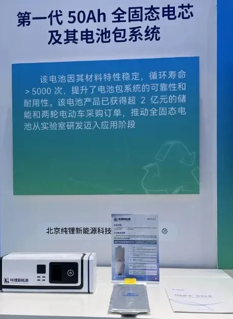 【固态电池:纯锂新能源50Ah全固态电芯及Pack惊艳亮相】2025年3月27日,以“新质生产力与全球科技合作”为主题的2025中关村论坛盛大开幕。在这场全球科技创新的盛宴上,国内已量产全固态电池企业纯锂新能源携自主研发的50Ah全固态电芯及Pack惊艳亮相。