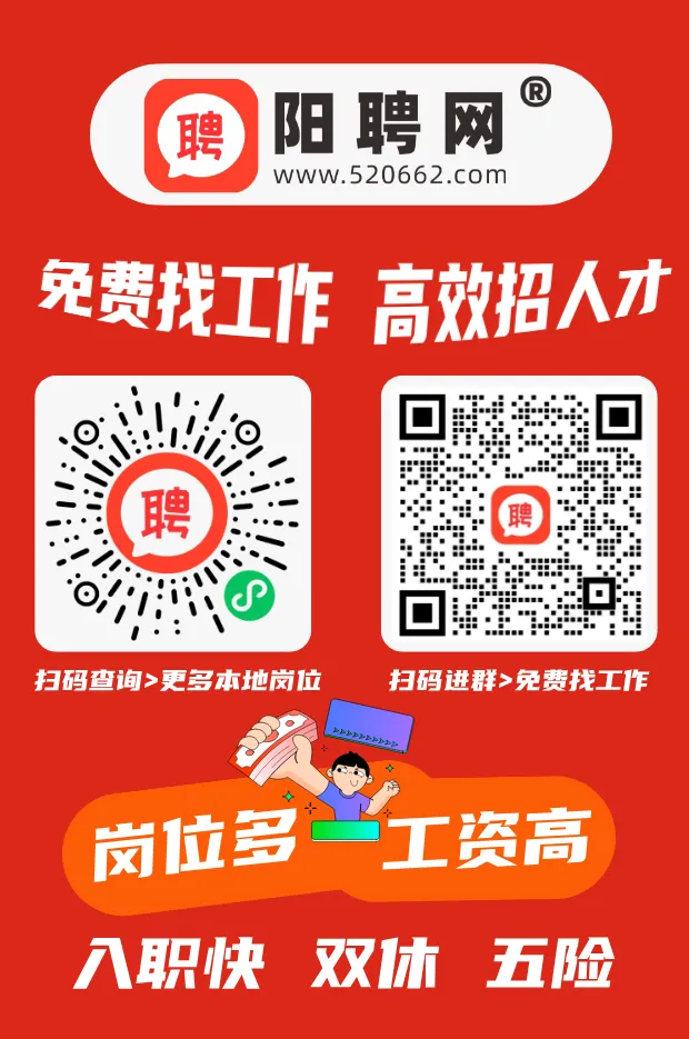 免责声明:以上信息均由阳聘网注册企业发布,所有内容均由发布者对信息的真实性负责,阳聘网平台及本公众号平台仅提供信息发布、展示。