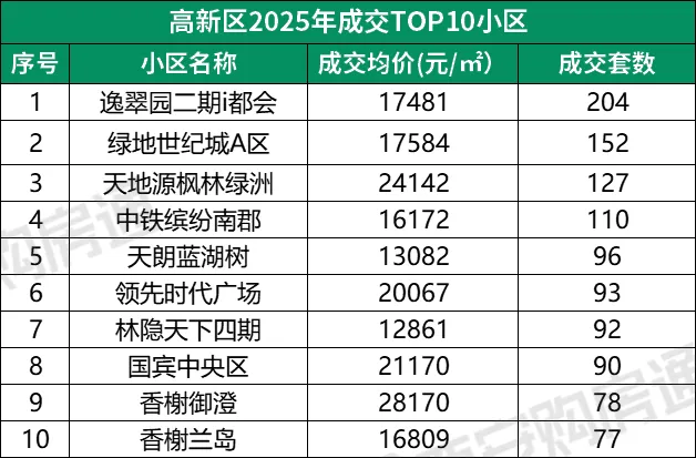 高新区依旧是硬通货!TOP3小区成交量一骑绝尘: