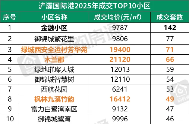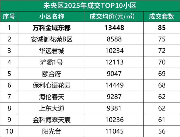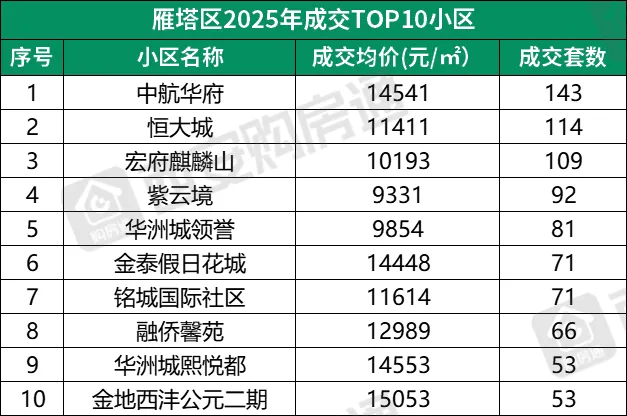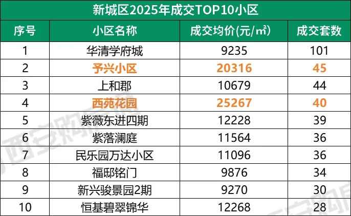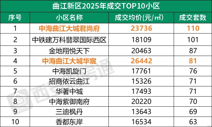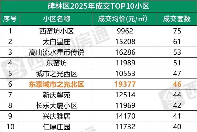 仔细看,哪怕是西安各区成交TOP10的小区,会发现: