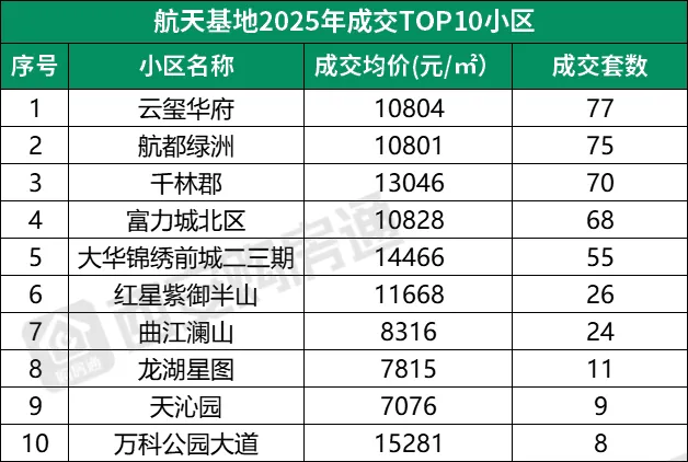 航天的TOP2小区,单价都只有1万出头,云玺华府的最新成交均价才9489元/㎡,两室价格仅80万左右。