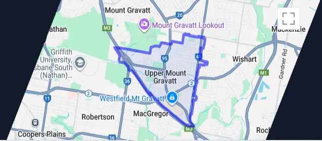 Upper Mount Gravatt 位于 Brisbane CBD 以南约 12 公里,是 Brisbane 南区最成熟、最核心的 商业 + 交通枢纽型 suburb 之一。