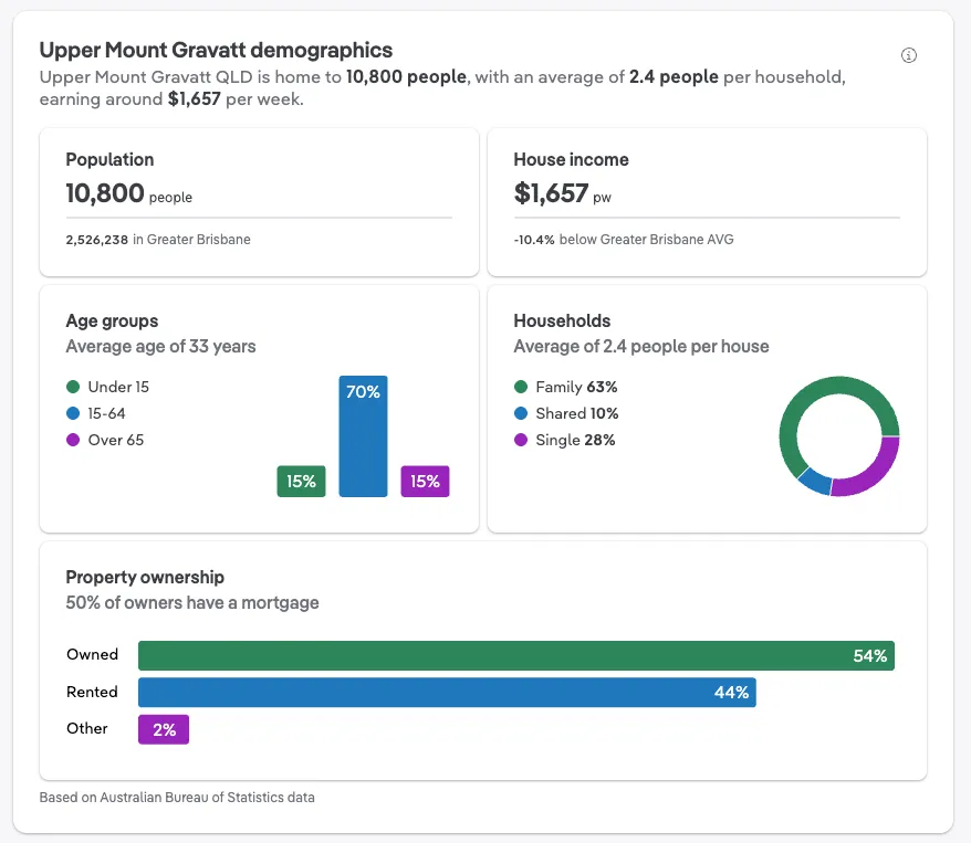 Upper Mount Gravatt 的需求不依赖单一人群,风险高度分散。