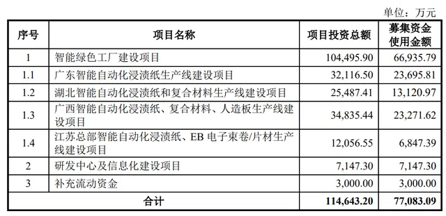 近期,深交所官网显示,江苏佳饰家新材料集团股份有限公司(以下简称“佳饰家集团”)的主板IPO申请获受理,值得注意的是,家居行业里颇有影响力的龙头企业兔宝宝也是它的股东之一。此次IPO公司计划募资7.7亿元,募资用途如下图所示: